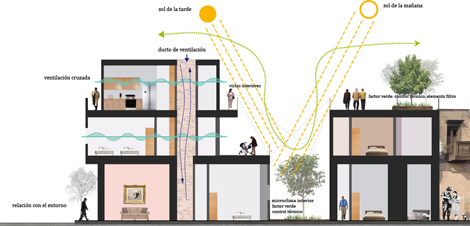 La intervención tiene como objetivo la restauración de una Casa Buque ubicada en los Barrios Altos, distrito céntrico de Lima Metropolitana, las pésimas condiciones existentes obligaron a realizar agresivas modificaciones para poder mantener y revitalizar esta histórica casa colectiva. El detalle técnico más importante para este planteamiento fue el de dotar de un corazón al proyecto, este corazón es una caja (estructuralmente hablando), la cual cumple la función de conectar ambos patios centrales a nivel horizontal y vertical, conecta y distribuye los espacios comunes y accesos a las viviendas, y a su vez alberga y centraliza las instalaciones mecánicas, eléctricas, sanitarias//Para el desarrollo del proyecto se liberaron las plantas originales, fortaleciendo los ejes y eliminando algunos elementos, esta operación consiguió una mejor distribución de las plantas independizando y haciéndolas autosuficientes, el tratamiento de los espacios comunes se implementó y se logró separar los ambientes comunes de los privados, convirtiendo las áreas privadas solo accesibles a los vecinos.