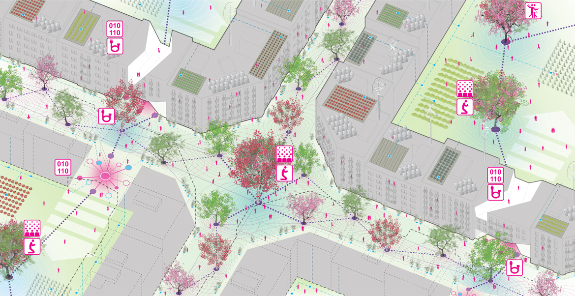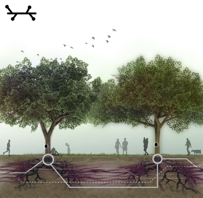 The project of CITY LIVING NETWORKS (CLN) starts with a simple idea: the (re)usability of the natural networks in our ecosystem modifying and extending them to generate biodigital links for data exchange in real-time. This concept of natural networks uses the DNA system to interchange biological and digital information creating therefore a network of networks, in multiple scales, up- grading the genetic information and different chains to biodigital levels. The key of this network is the BDDE (Bio Digital Data Exchange), that is a (theorical) new protocol that allow to connect any living thing to a machine, just simple as that, this technology would be able to talk to trees, know about their needs (water, clean air, etc) and modifying their genetic growth, to help nature give the next step in evolution.