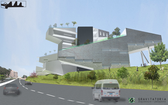 La propuesta planteada como traducción espacial y cultural de dicha sensibilidad, quiere expresar, conceptual y arquitectónicamente, los propios contenidos contemplados, materializando en una nueva geografía relacional su principal característica: la de el concepto de paisaje operativo. Éste traza una geometría irregular de montes y valles asociados a un gran perfil quebrado que configura una cubierta pública y transitable y divide el espacio en ámbitos expositivos. Las forma de las aulas son (re)definidas por la estructura base modificadas para el apilamiento volumétrico y generar formas mas audaces y a la vez racionales en el sentido estructural, planteando una visión mas eficiente que pueda solucionar de la mejor forma posible el requerimiento de aulas en gradería.