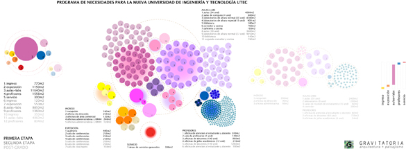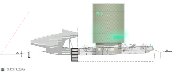 El proyecto persigue una definición conceptual cualitativa en el enclave previsto: un relieve irregular más que una caja neutra. La nueva Universidad de Ingeniería y Tecnología UTEC desarrolla un programa diversificado y unitario a partir de una superficie recortada y plegada en la que una distribución en peine articula diversos espacios funcionales independizados e (inter)conectados. Tres grandes unidades funcionales (hall / nave(s)-aulas + distribuidor(es) / muelle- patio) y un cuerpo doble ("torre / edificio") destinado a espacio de auditorios, comedor y programa con cierta independencia respecto a la Universidad.