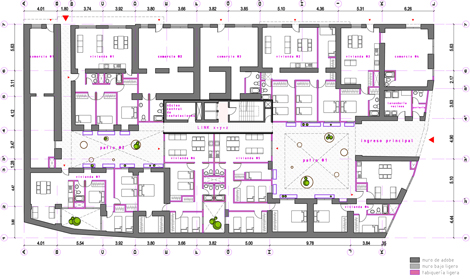 La intervención tiene como objetivo la restauración de una Casa Buque ubicada en los Barrios Altos, distrito céntrico de Lima Metropolitana, las pésimas condiciones existentes obligaron a realizar agresivas modificaciones para poder mantener y revitalizar esta histórica casa colectiva. El detalle técnico más importante para este planteamiento fue el de dotar de un corazón al proyecto, este corazón es una caja (estructuralmente hablando), la cual cumple la función de conectar ambos patios centrales a nivel horizontal y vertical, conecta y distribuye los espacios comunes y accesos a las viviendas, y a su vez alberga y centraliza las instalaciones mecánicas, eléctricas, sanitarias//Para el desarrollo del proyecto se liberaron las plantas originales, fortaleciendo los ejes y eliminando algunos elementos, esta operación consiguió una mejor distribución de las plantas independizando y haciéndolas autosuficientes, el tratamiento de los espacios comunes se implementó y se logró separar los ambientes comunes de los privados, convirtiendo las áreas privadas solo accesibles a los vecinos.